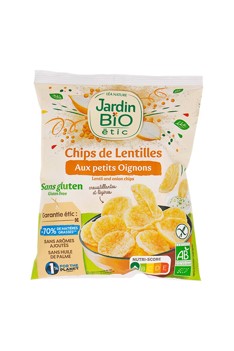 Chips de lentilles aux petits oignons bio.