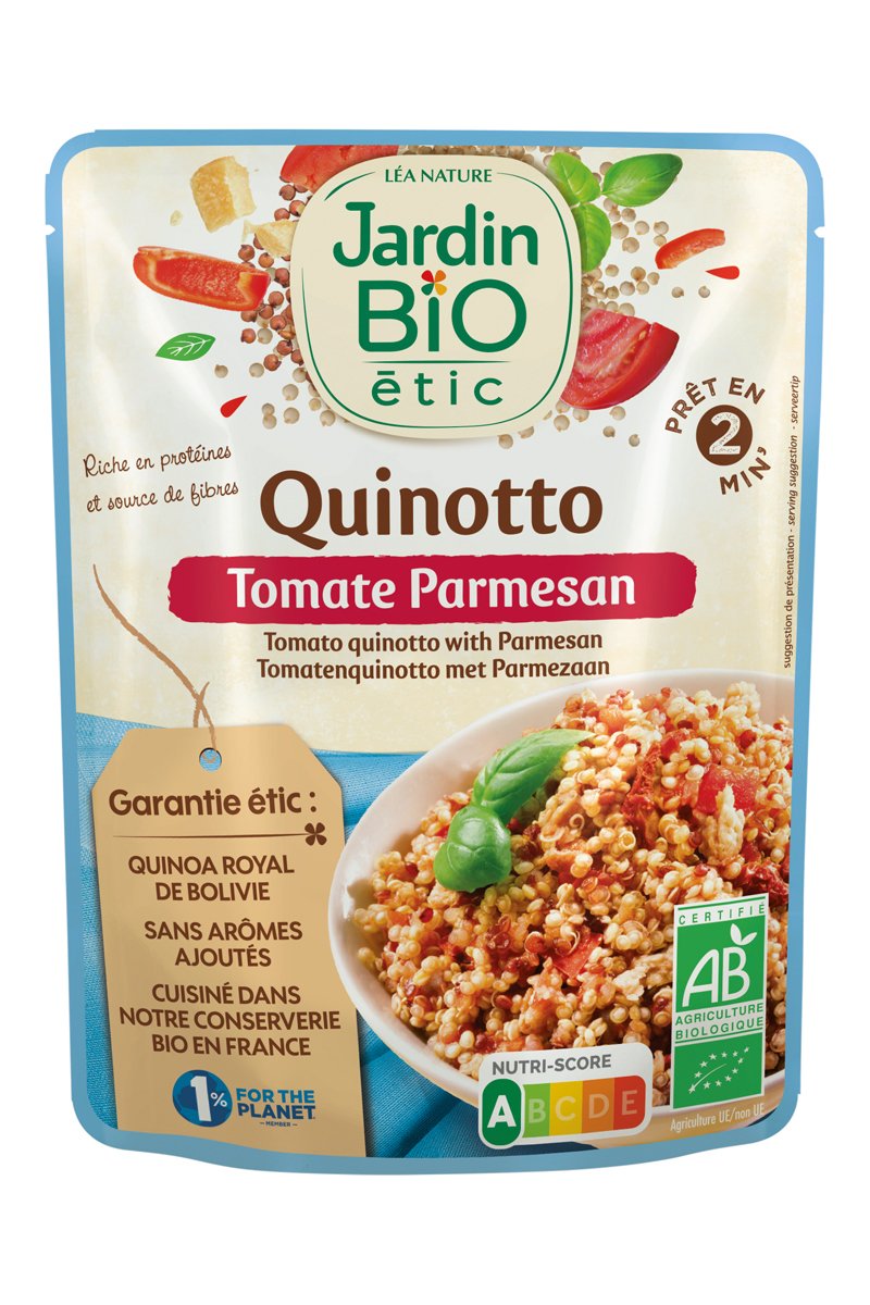 Jardin Bio vous propose une recette gourmande et originale à base de quinoa cuisiné à la tomate et au parmesan façon risotto.