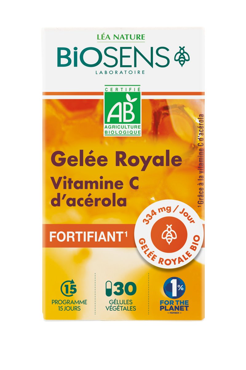Substance sécrétée par les glandes des abeilles ouvrières, la gelée royale constitue un concentré nutritif très riche. C'est un trésor nutritionnel gorgé de vitamines, minéraux, acides aminés et enzymes. La vitamine C naturelle issue d'acérola - Malpighia glabra - contribue au fonctionnement normal du système immunitaire et aide à réduire la fatigue. Elle contribue à protéger les cellules contre le stress oxydatif.