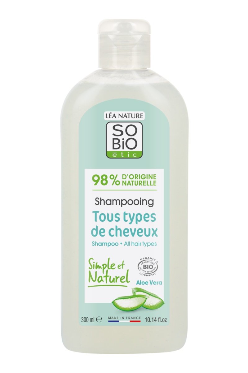 Shampoing aloe vera bio tous types de cheveux.