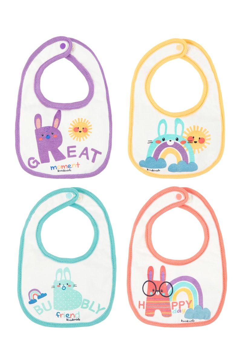 4 bavoirs - Blanc, bleu, jaune et gris