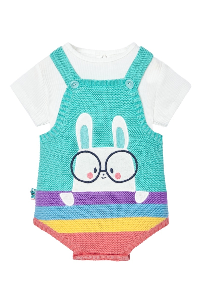 Motif lapin avec lunettes et rayures.
