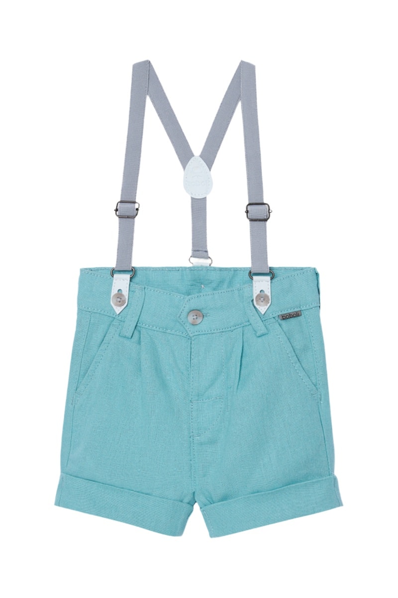 Bermuda en lin et bretelles - Turquoise et bleu