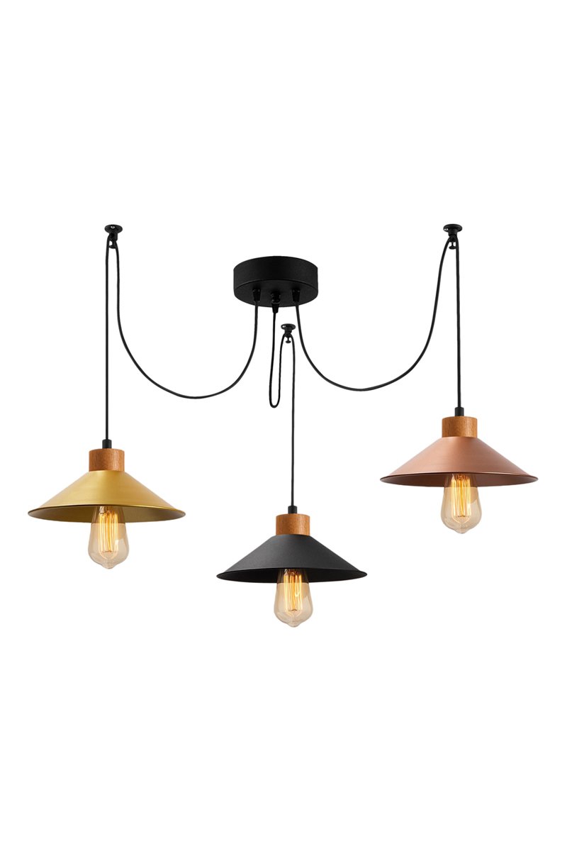 Suspension araignée Manavgat - Noir et cuivré - 3 x 40 W