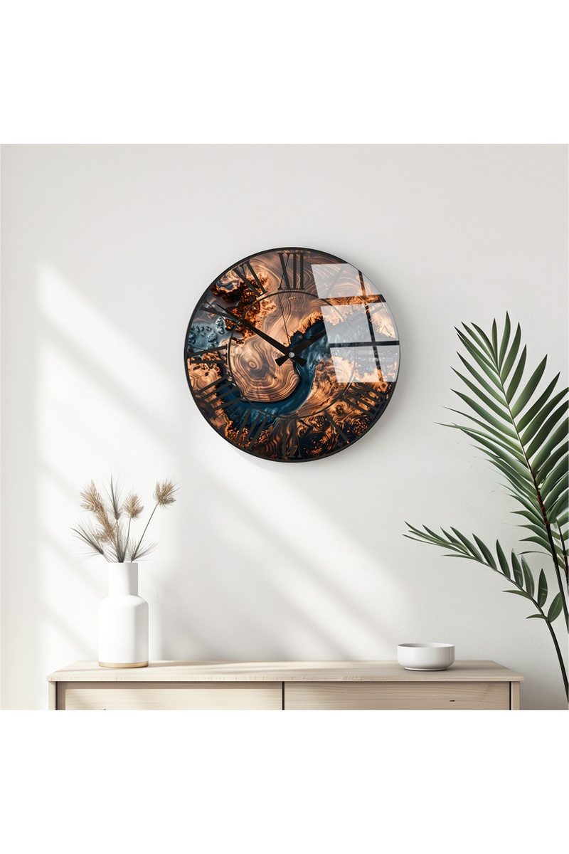Horloge - 40 cm - Marron et bleu foncé