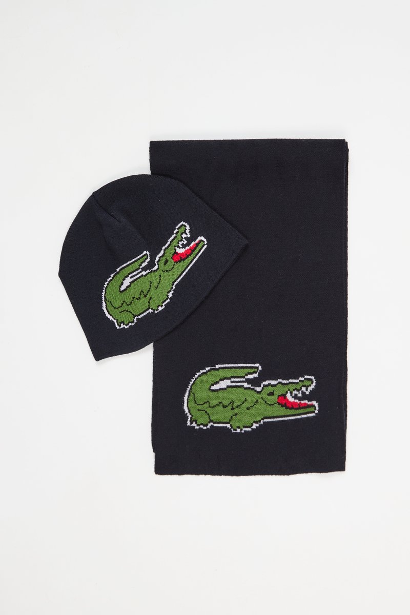 Bonnet et écharpe en laine - Noir