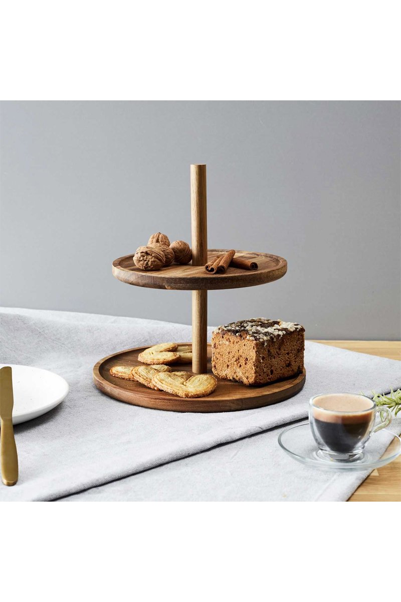 Présentoir 2 étages en bois d'acacia - Naturel - 25 cm