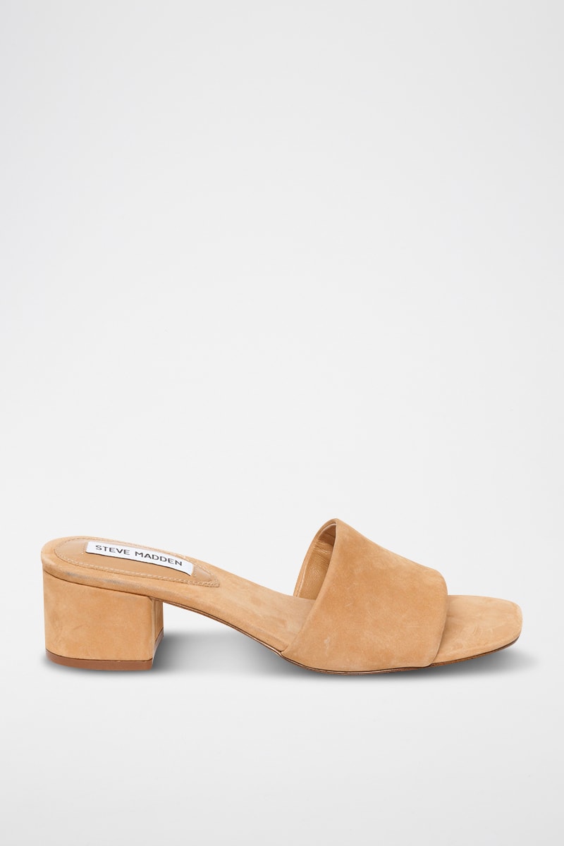 Mules à talons en nubuck - Camel