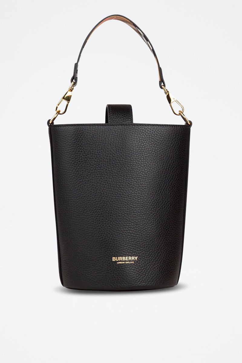 Sac seau en cuir grainé.