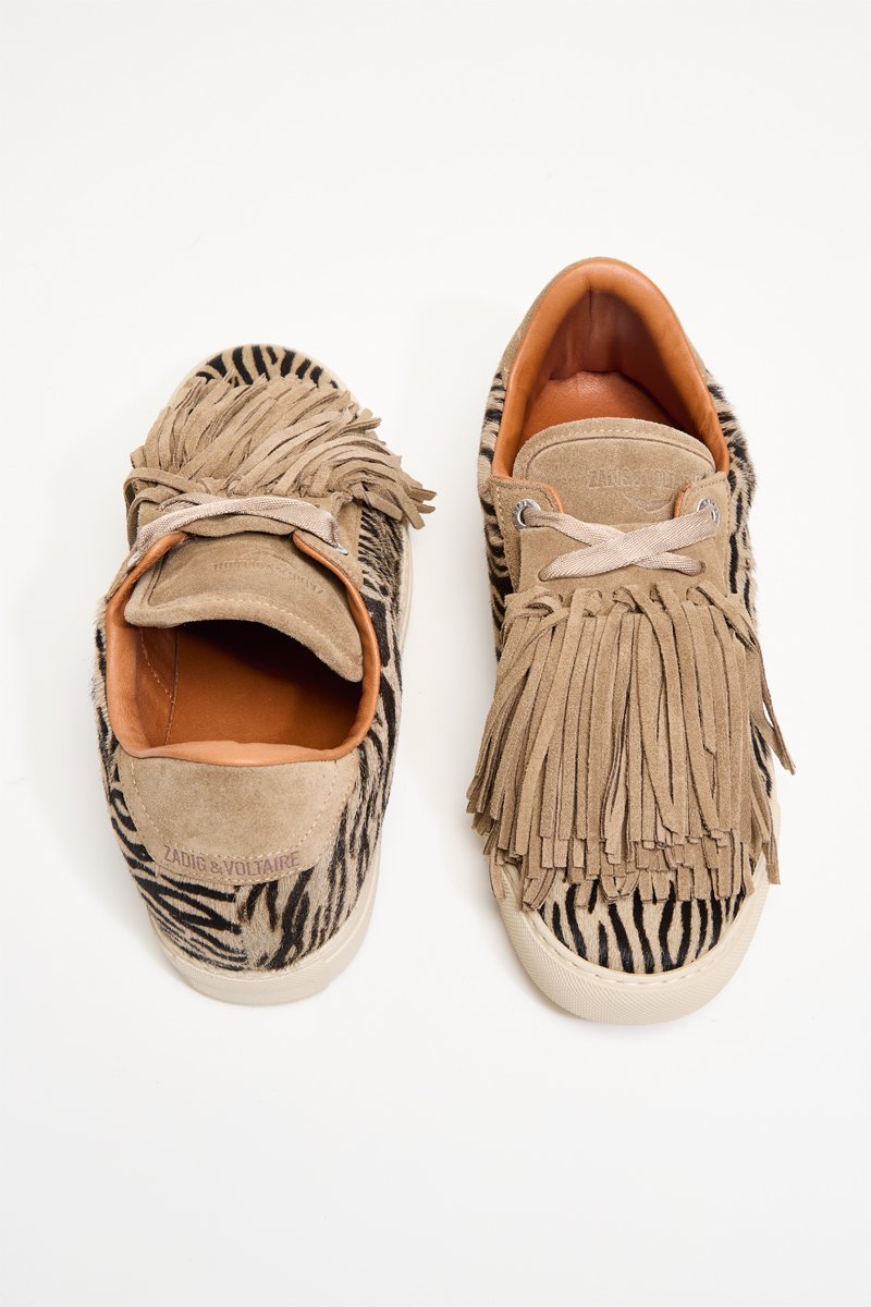 Baskets en nubuck effet poulain.