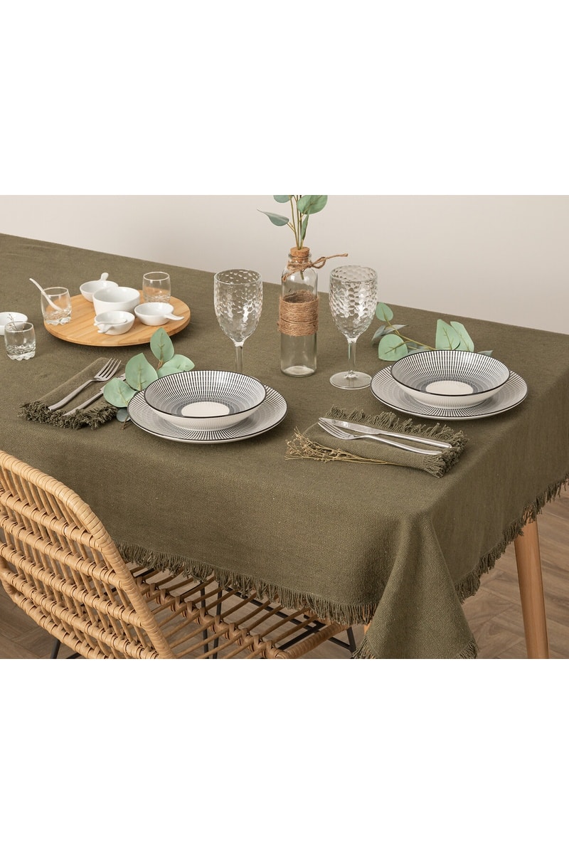 Nappe rectangulaire Maha - Vert kaki - 150 x 250 cm