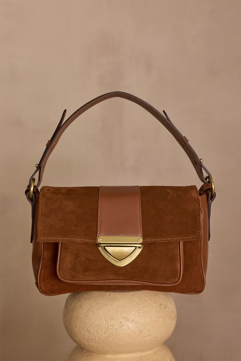 Sac à main en cuir et croûte de cuir.