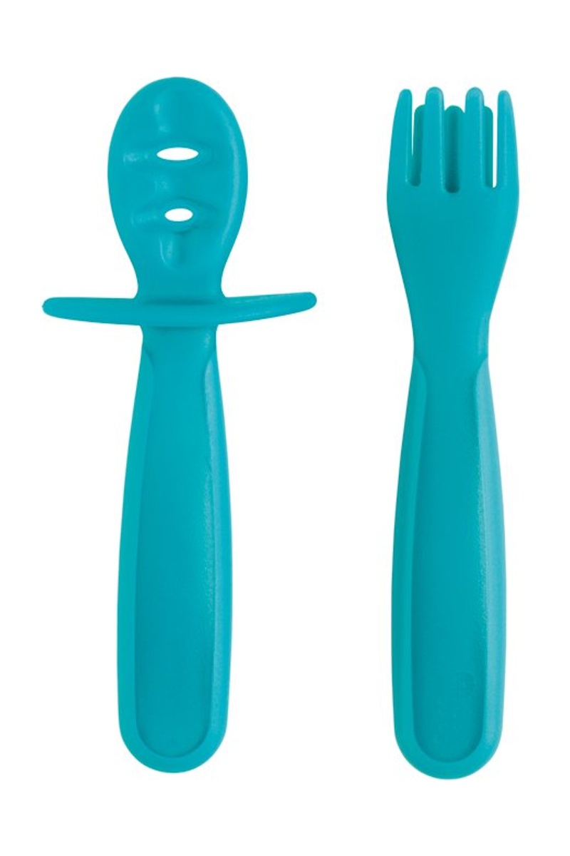 La cuillère est dotée de rainures et canaux en relief pour accrocher la nourriture.