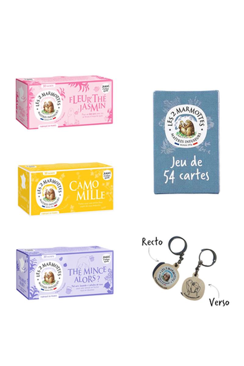 Infusion camomille, fleur'thé jasmin bio, thé mince alors, jeu 54 cartes et porte-clés - 3 x 30 sachets