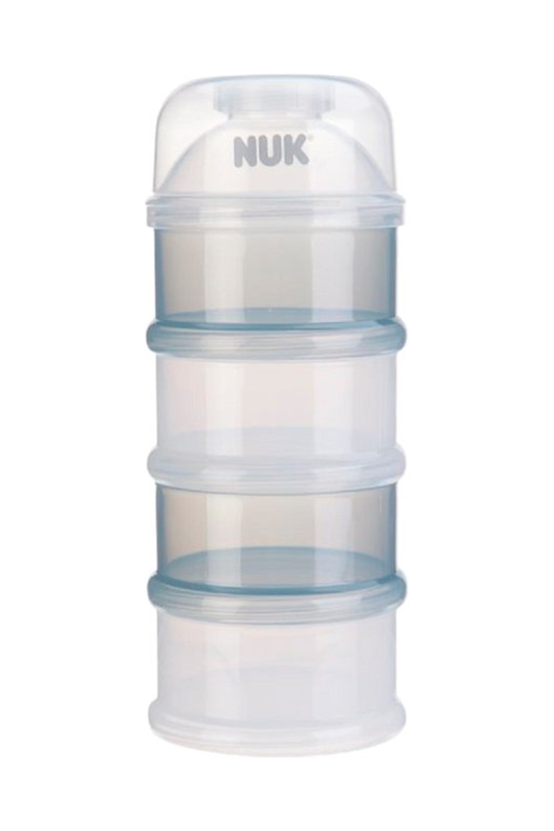 Composée de 4 compartiments empilables les uns sur les autres pouvant contenir jusqu'à 10 mesurettes de poudre chacun.