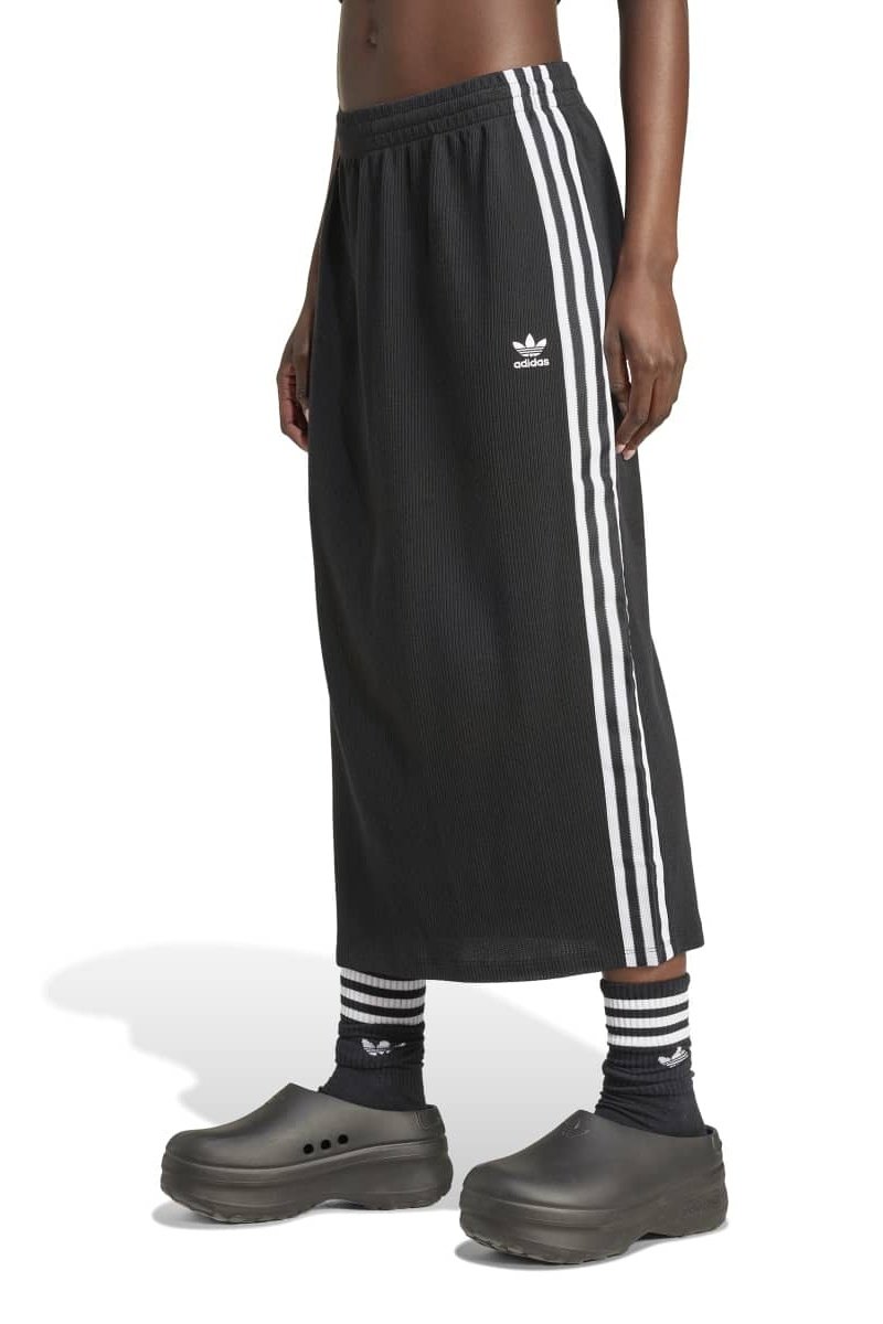 Jupe droite en maille côtelée.