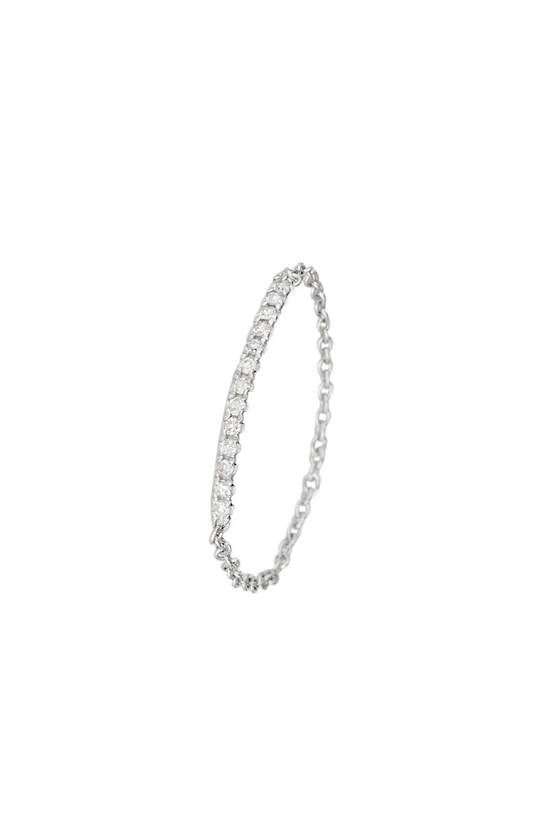 Bague chaîne Barre scintillante - Or blanc et diamants