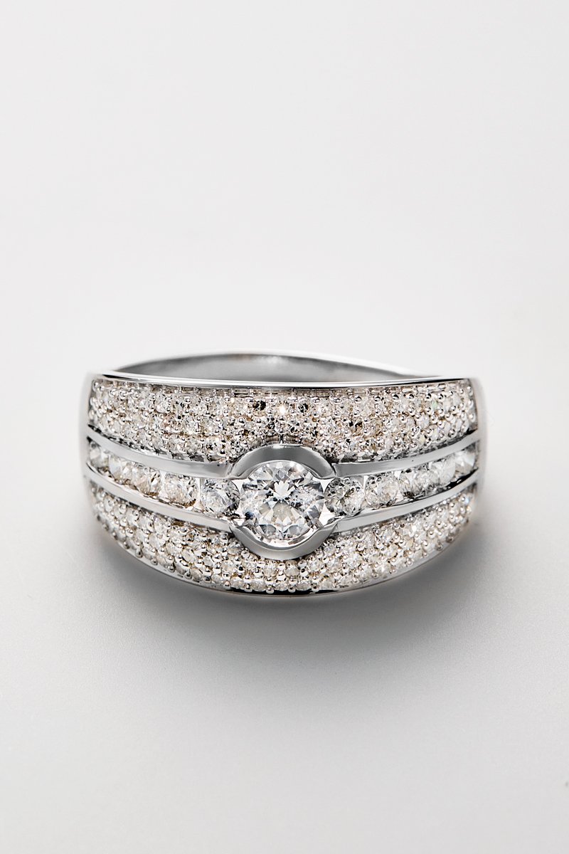 Bague en or blanc sertie de 129 diamants dont un solitaire.