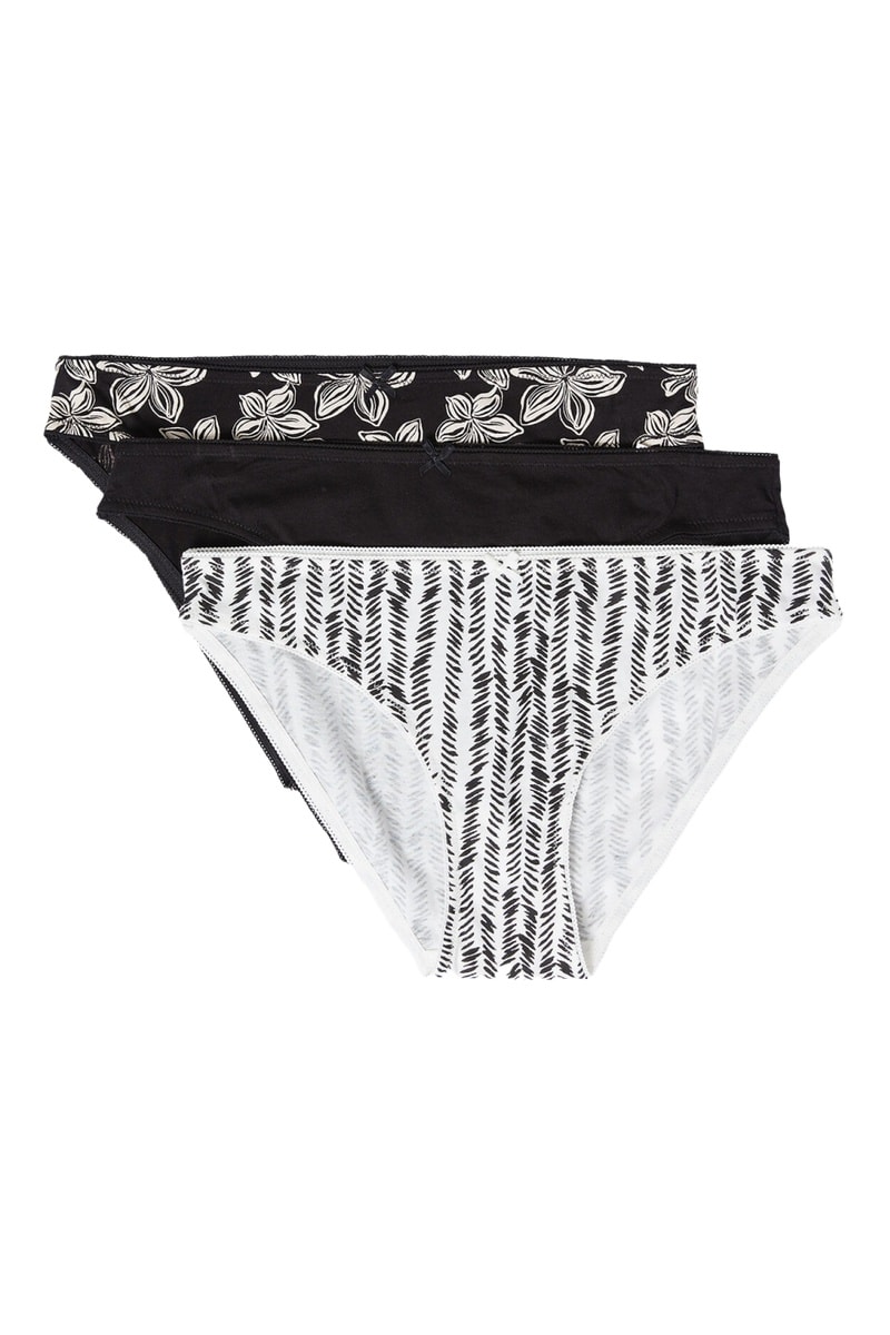 3 culottes dont 1 à motifs fleuris et 1 à motifs fantaisie.
