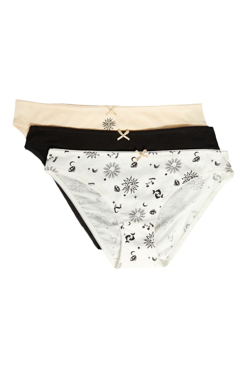 3 culottes dont 1 à motifs fantaisie et 1 à motifs fantaisie devant.