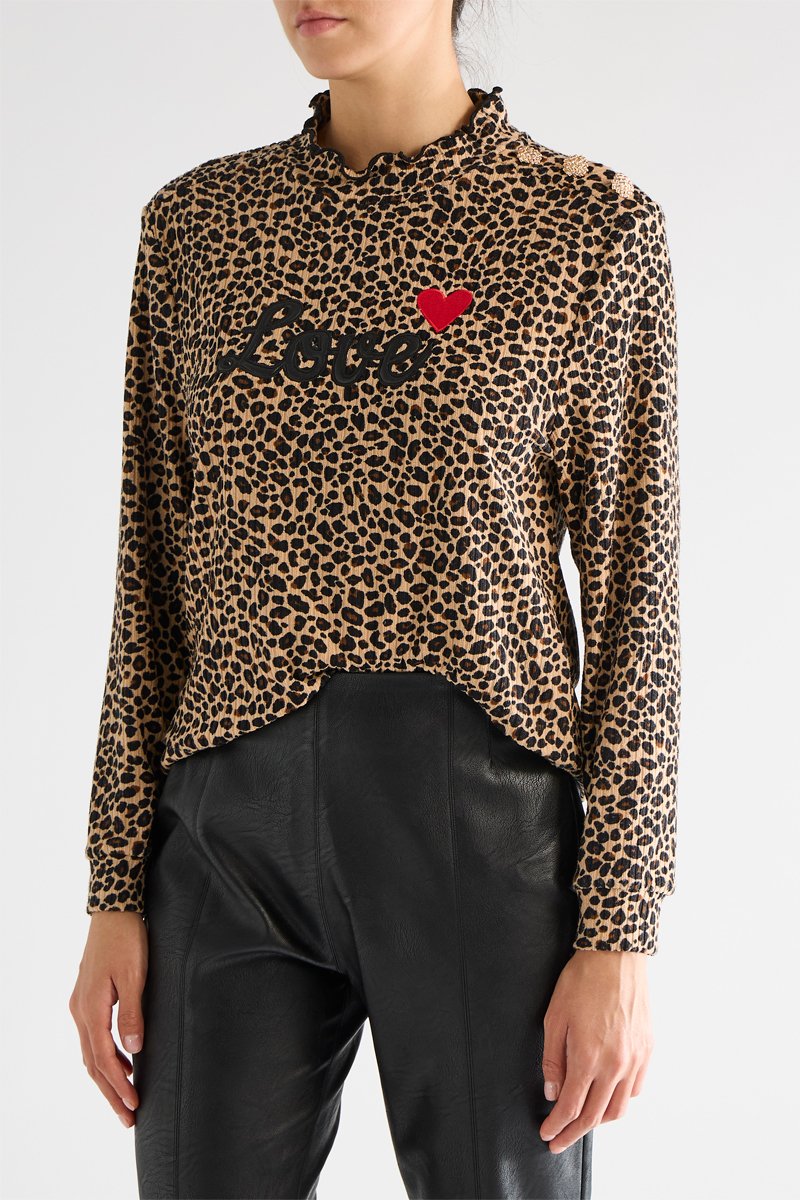 Lettrage et motif cœur brodés devant.