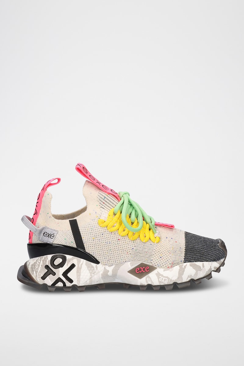 Sneakers plateformes en cuir - Beige et rose