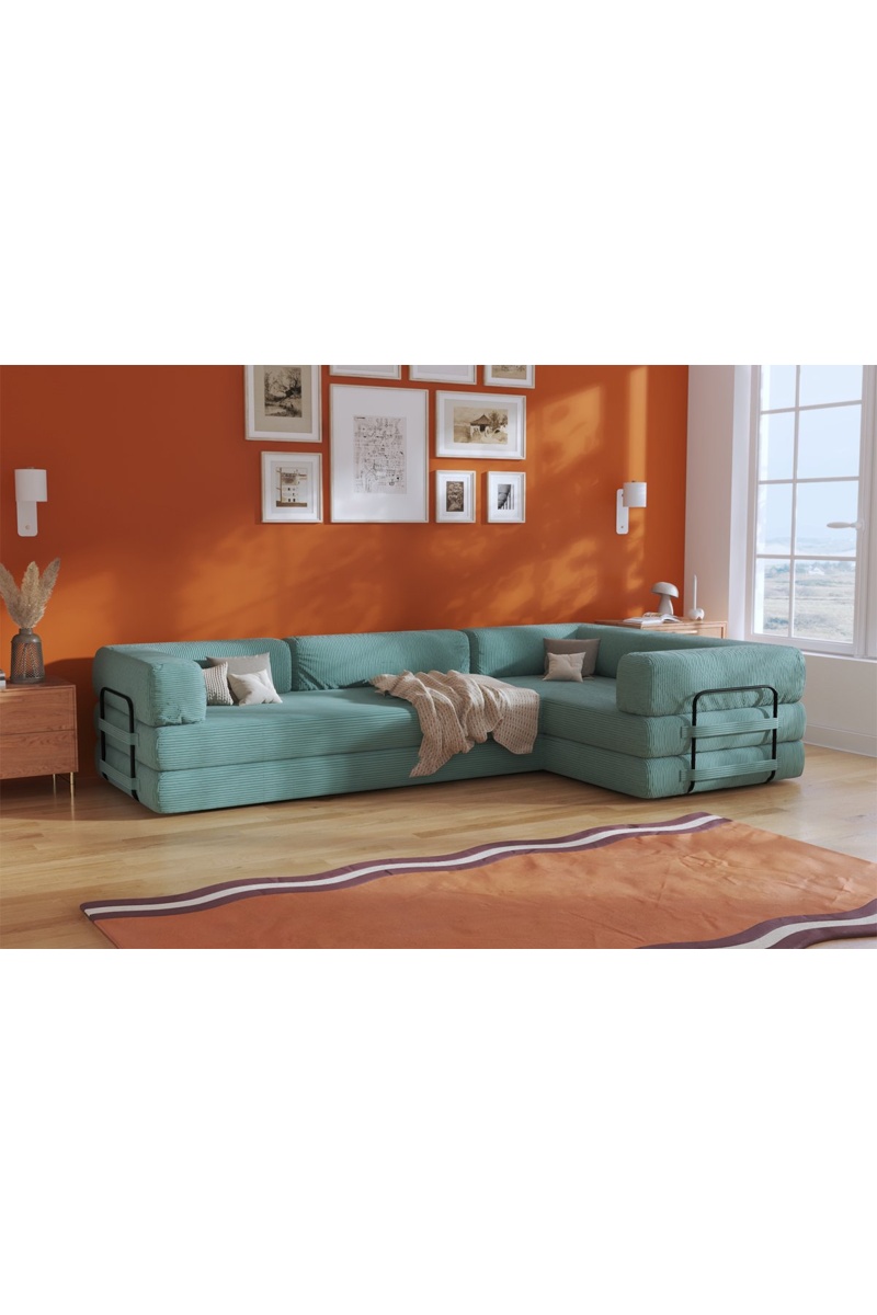 Canapé d’angle droit convertible Smart - Vert - 4 places - En tissu velours