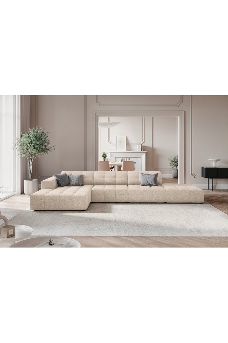 Canapé d'angle gauche Chicago - Beige - 5 places - Tissu chenille