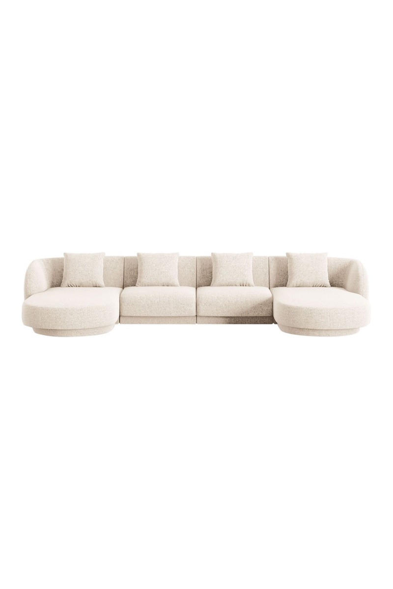 Canapé panoramique Tulum - Beige clair - 5 places - Tissu chenille