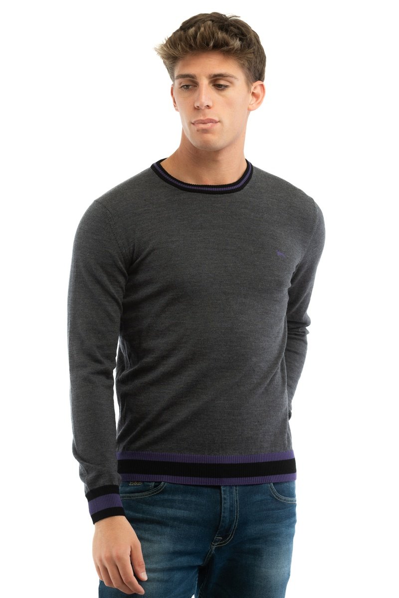 Motifs à rayures à l’encolure, sur les manches et à la base.