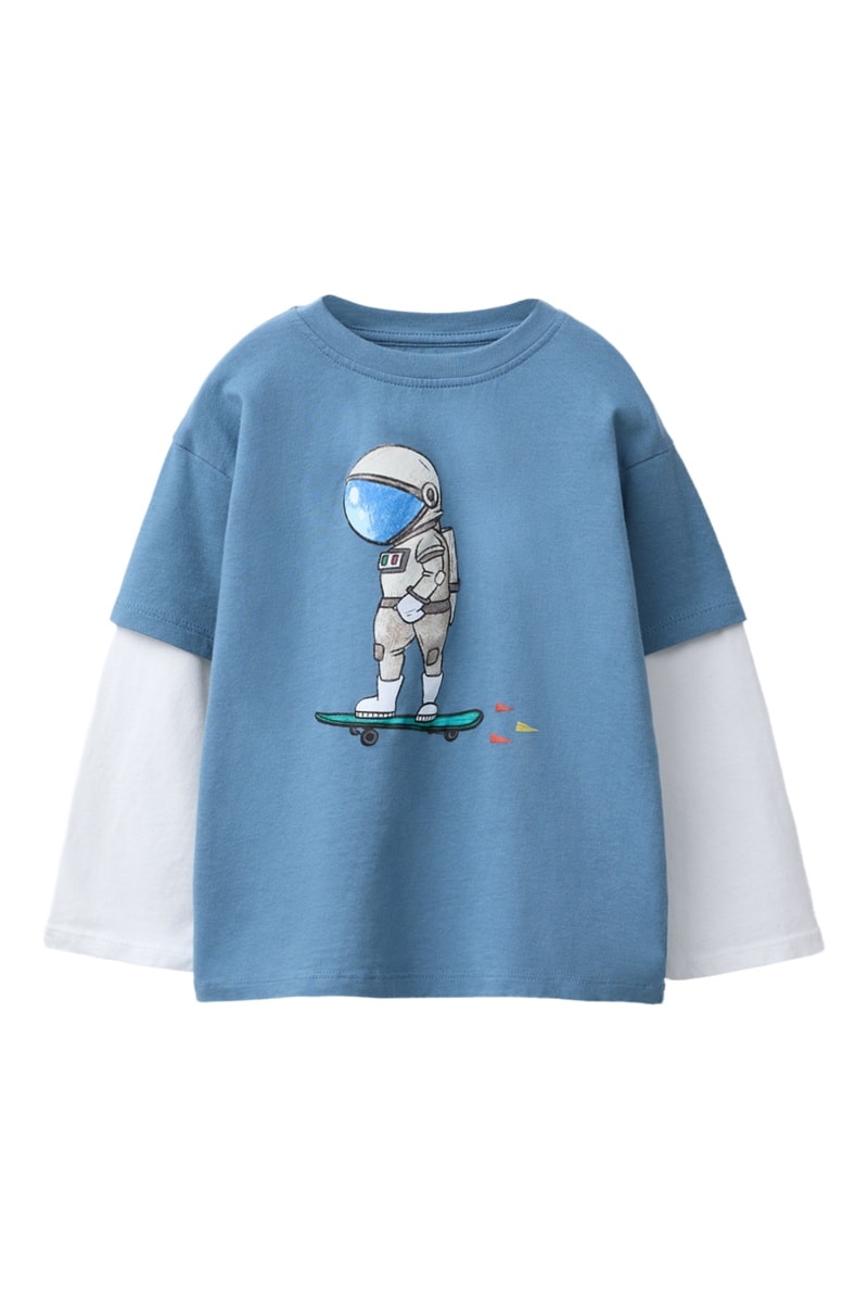 T-shirt trompe-l’œil - Bleu cobalt et blanc