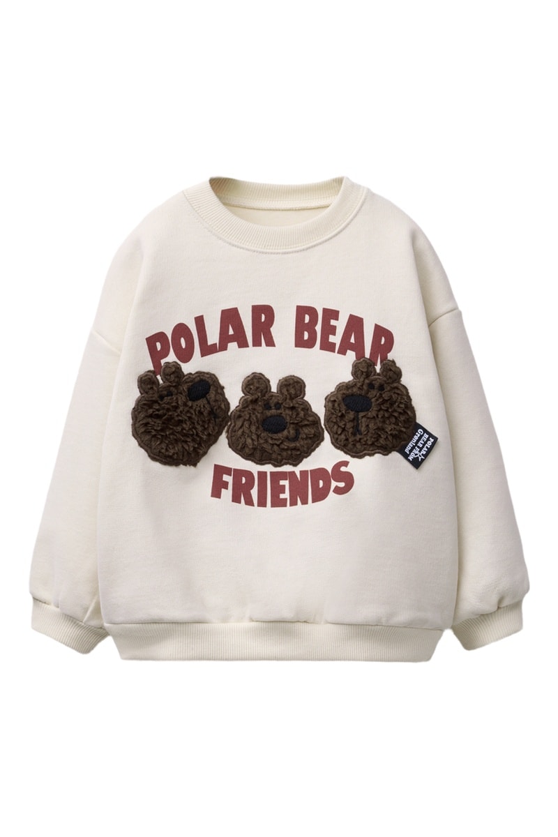 Lettrage, empiècements en fourrure synthétique et avec lettrage devant.