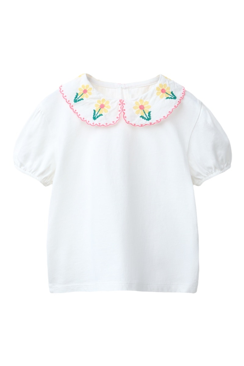 Col Claudine festonné et à motifs fleurs.