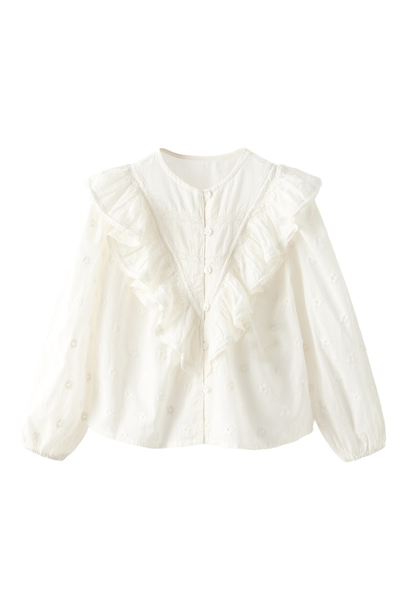 Volants et empiècements en dentelle devant et au dos.