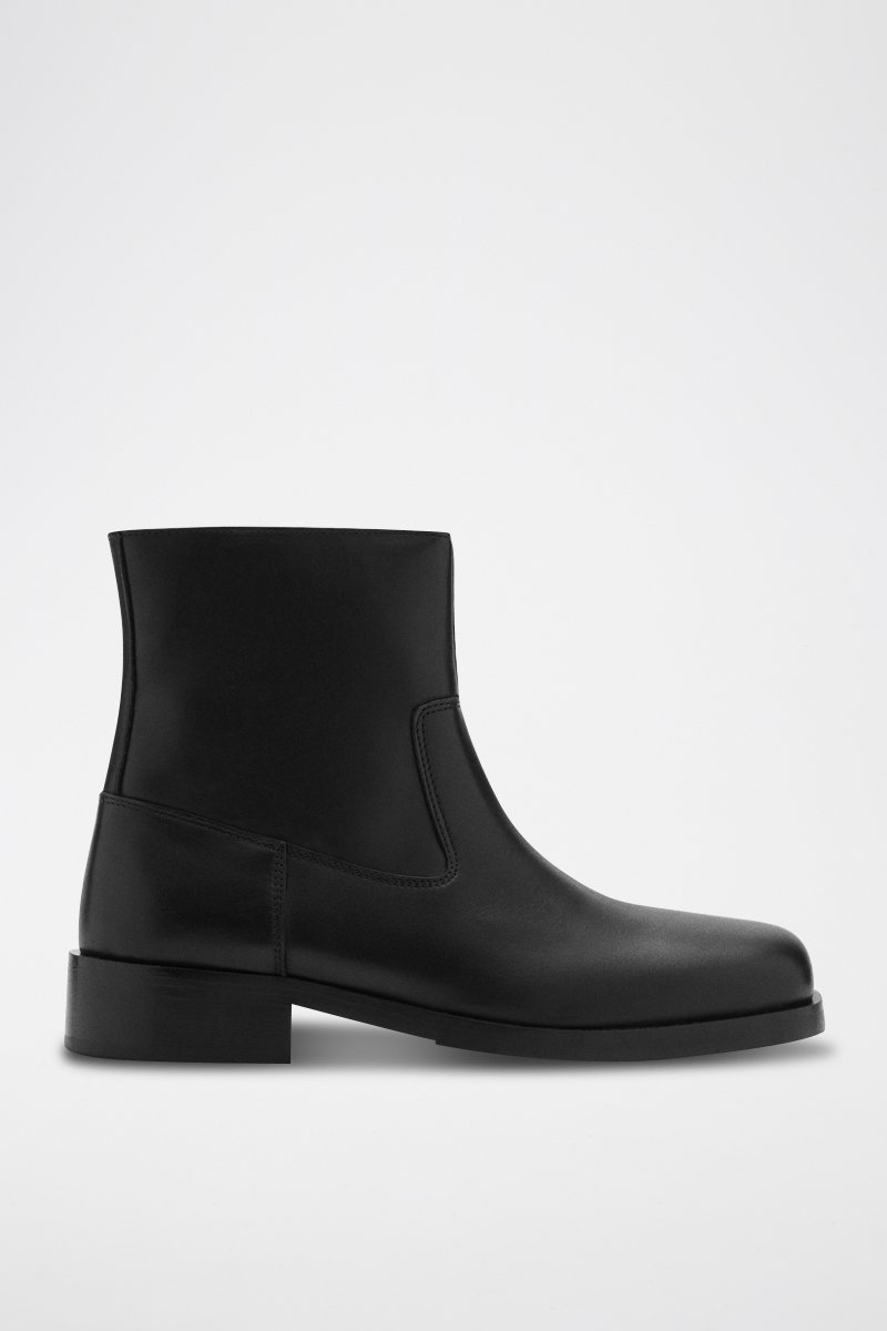 Bottines cuir bout carré - Noir