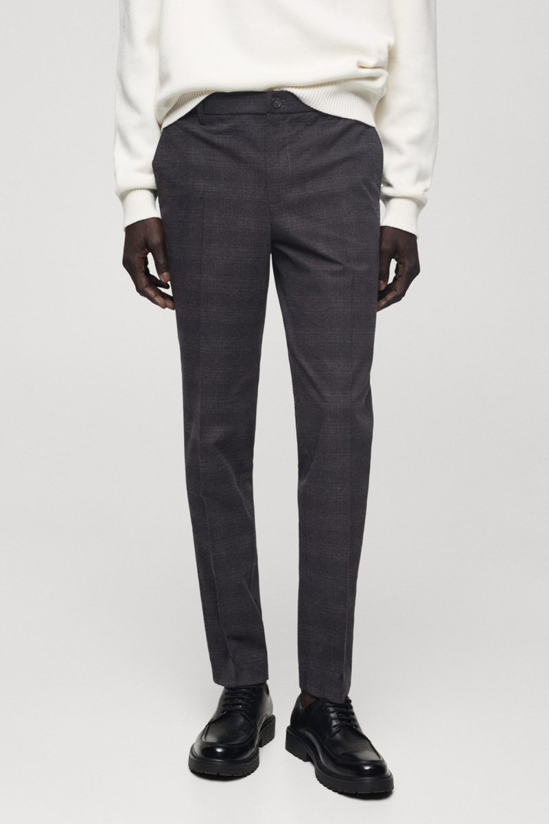 Pantalon slim-fit coton carreaux écossais - Gris foncé chiné