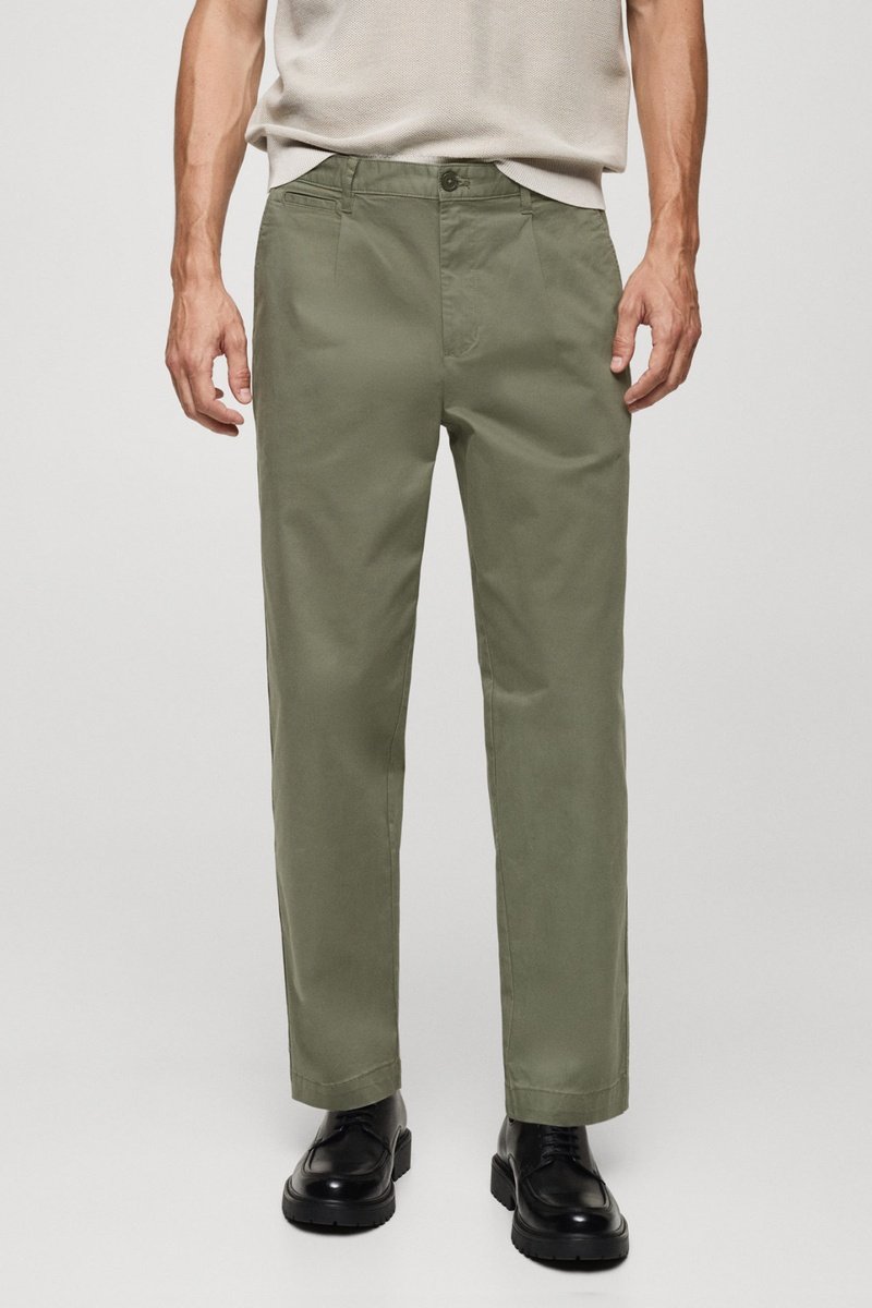 Pantalon regular fit coton pinces - Vert