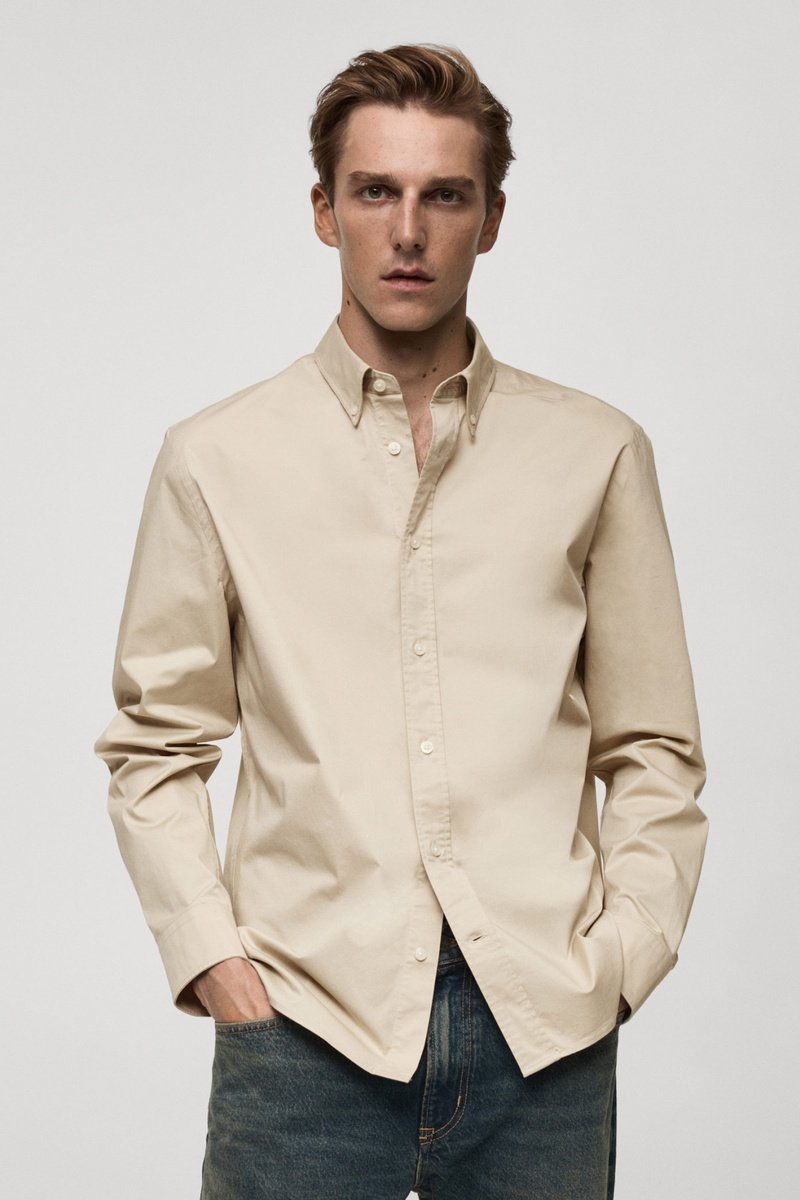 Chemise regular fit coton - Beige