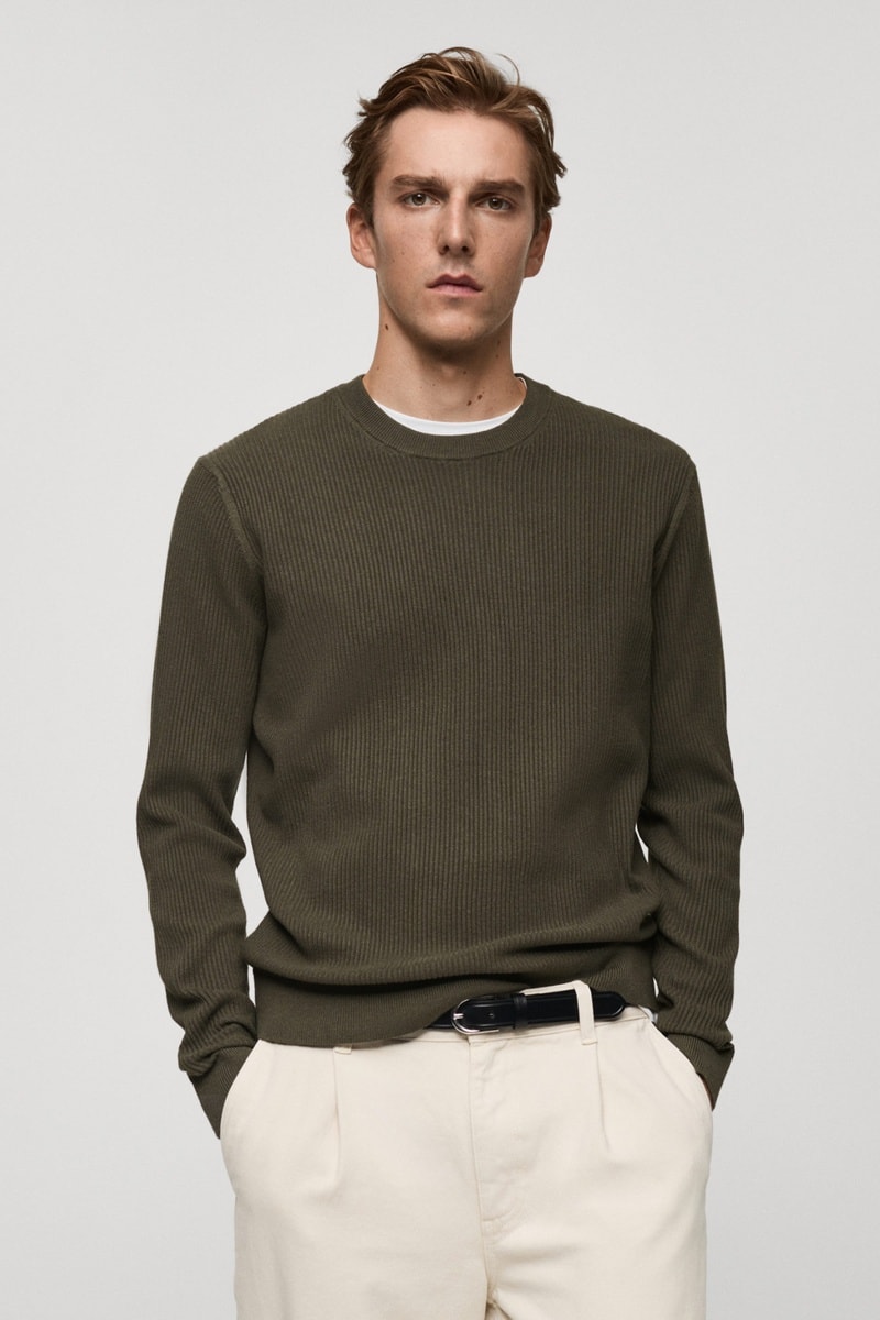 Bords côtelés au niveau du col, des manches et sur le bas.