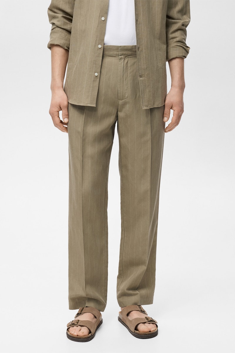 Pantalon lin fines rayures - Kaki