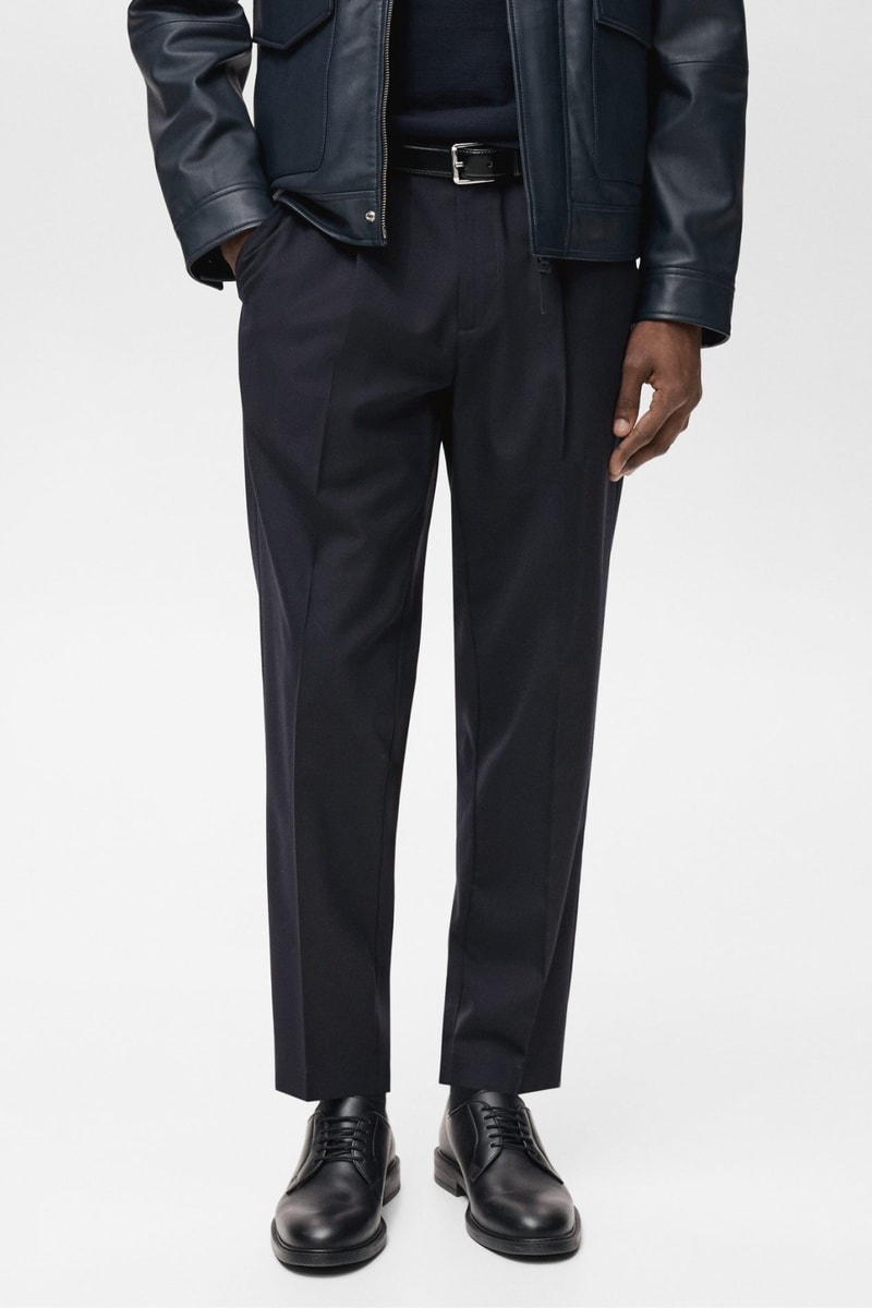 Pantalon laine froide slim-fit pinces - Bleu nuit