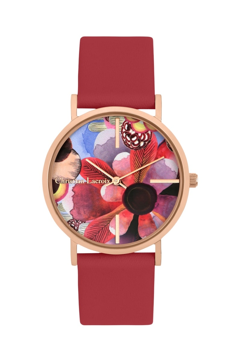Montre à quartz en cuir Summer Bloom - Rouge et doré rose