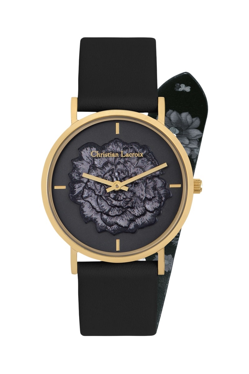 Montre à quartz en cuir Jardin des Hesperides - Noir et doré