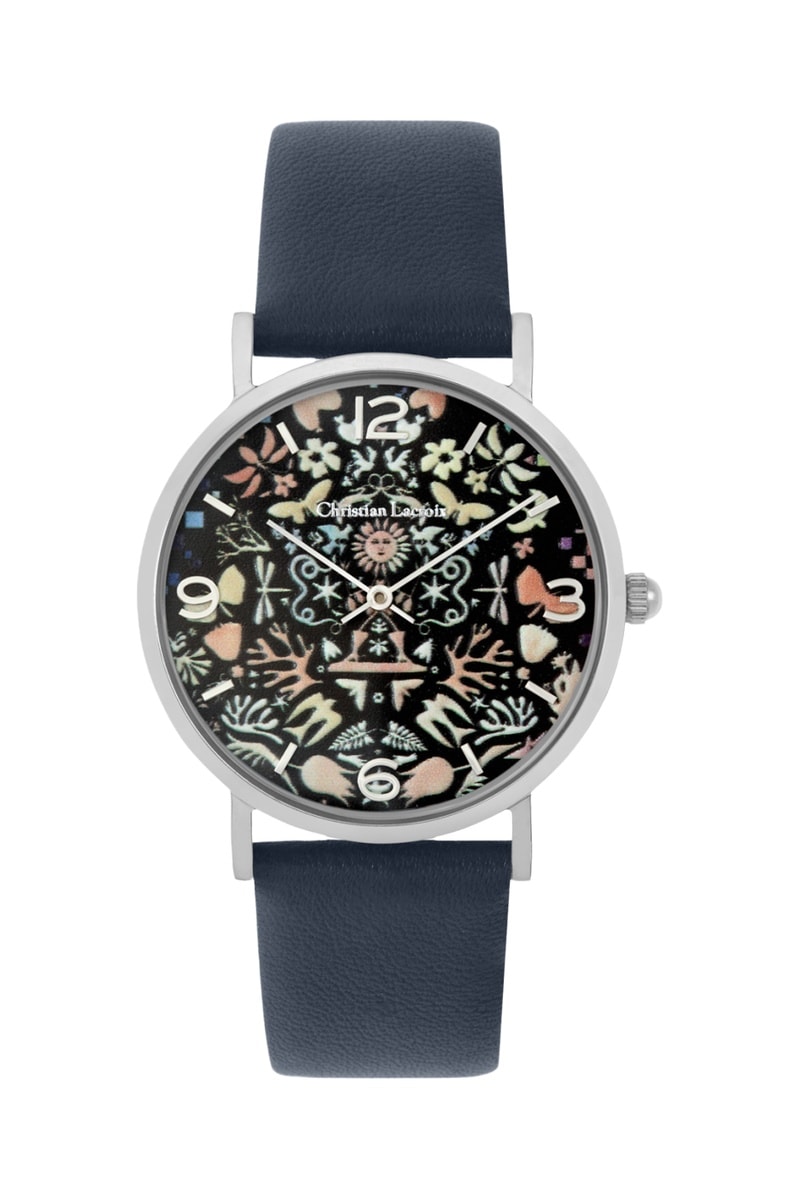 Montre à quartz en cuir Rêve de papier - Bleu foncé et argenté