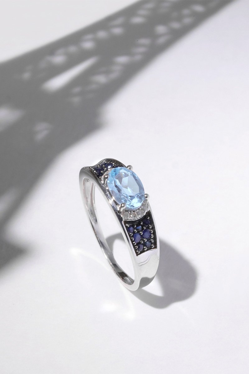 Bague Azur - Or blanc, saphirs, topaze et diamants