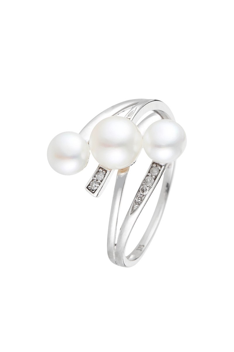 Bague en or blanc sertie de 5 diamants et de 3 perles de culture.