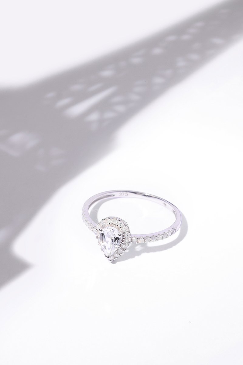 Matière : or blanc 375/1000, diamants 0,202 carat/32 et topaze 0,825 carat/1