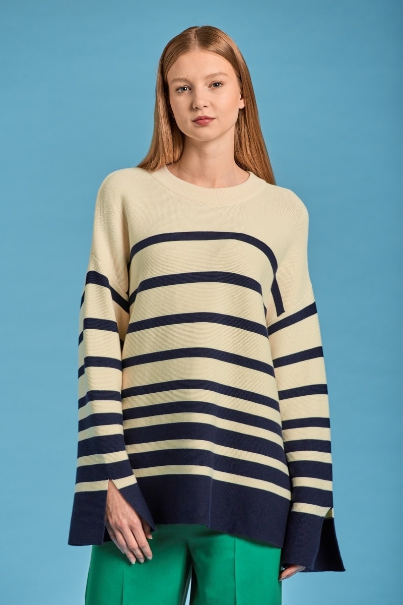 Pull à manches longues fendues.