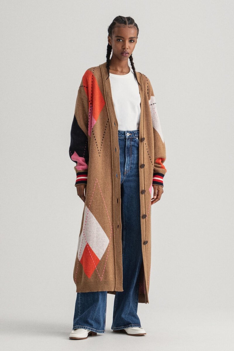 Gilet long en laine mélangée.