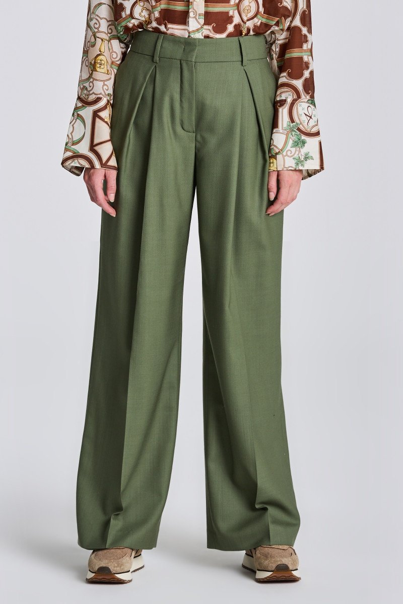 Pantalon en laine taille haute - Vert